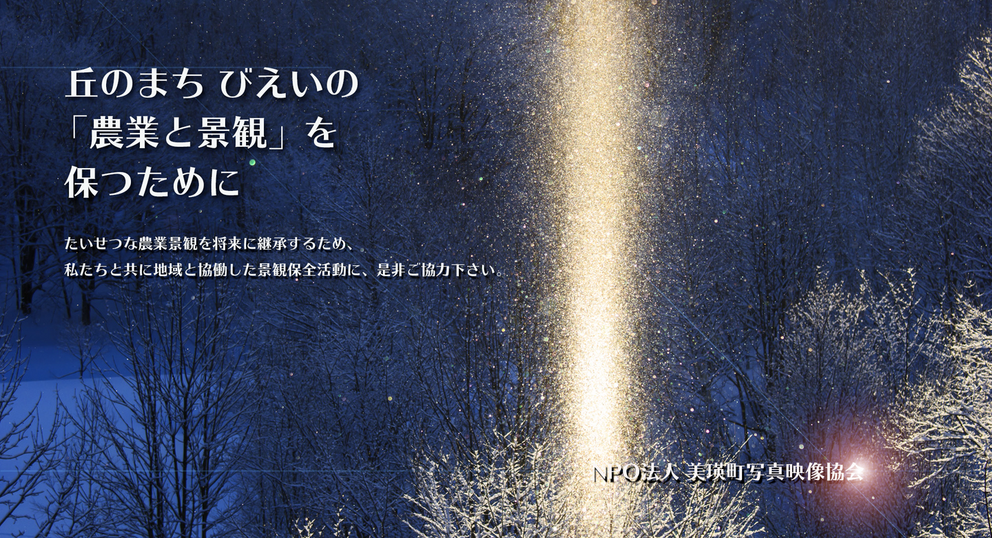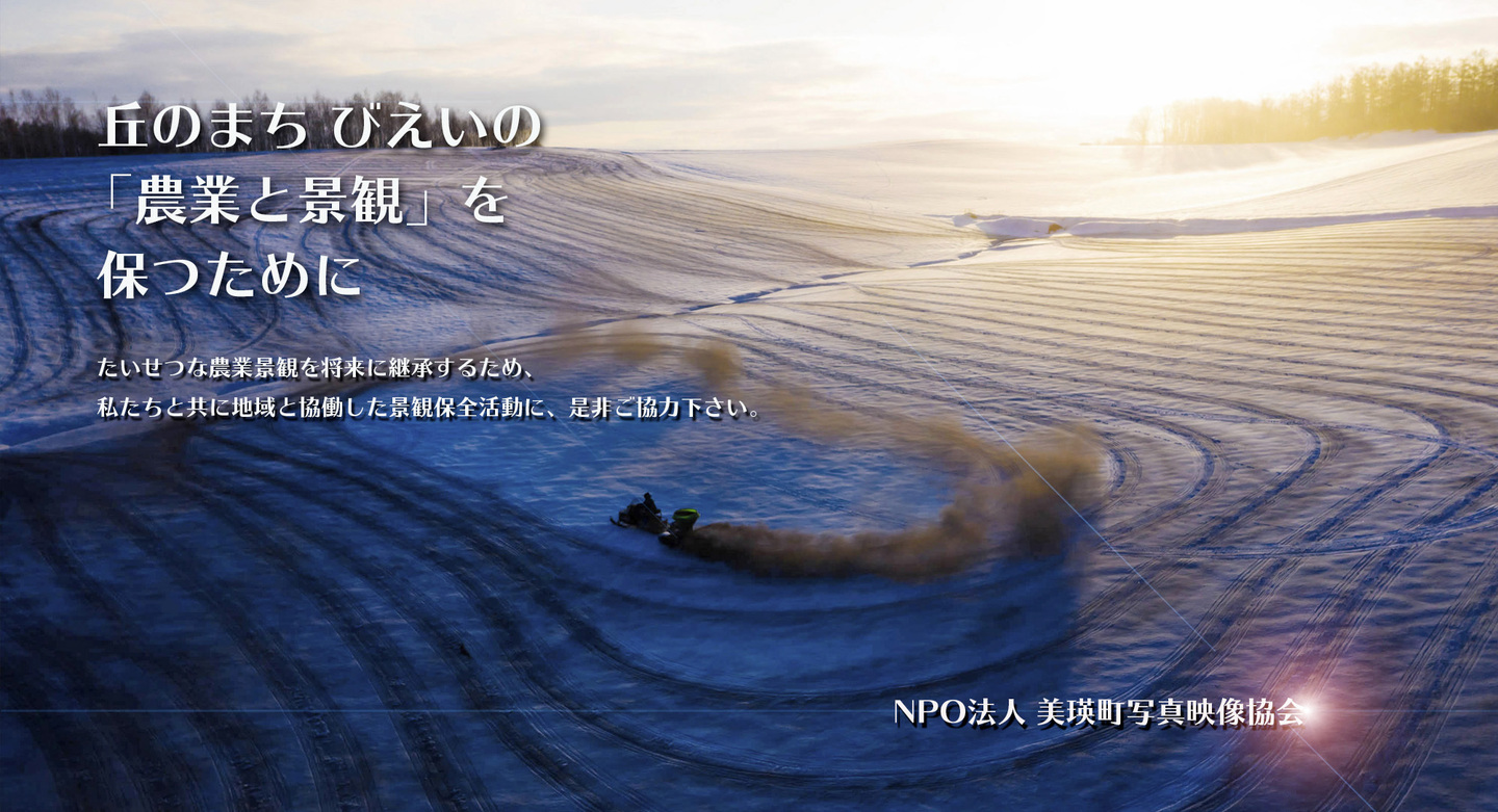 農業の営みにより守り育てられている美しい景観を次世代に引き継ぐため、国内外の写真家や観光客と写真や映像などで交流しながら、美瑛の撮影マナー及びルールを定め、その普及により農地の保護と地域経済の発展に寄与することを目的とするため、NPO法人 美瑛町写真・映像協会を設立致しました。